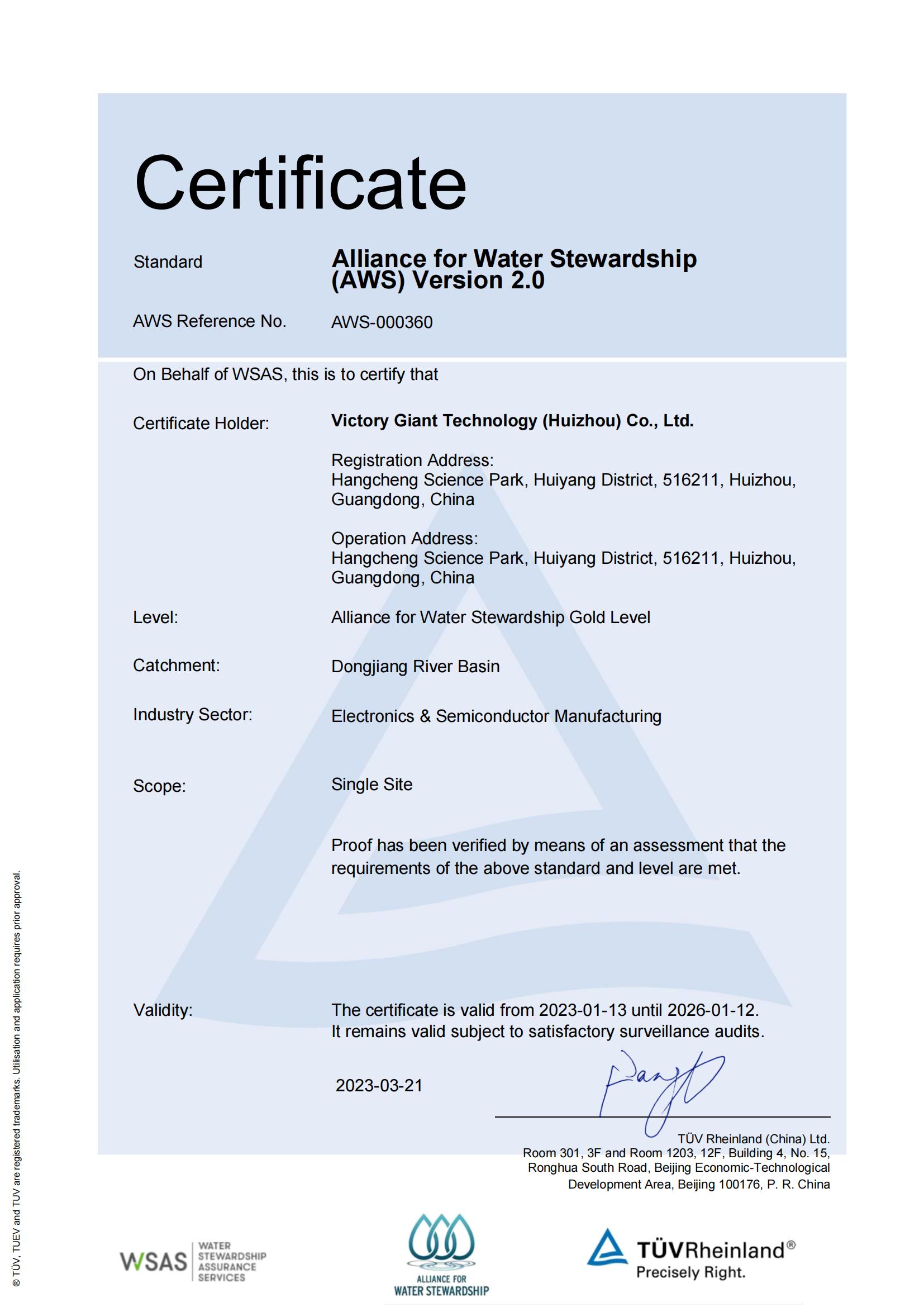 AWS标准认证证书